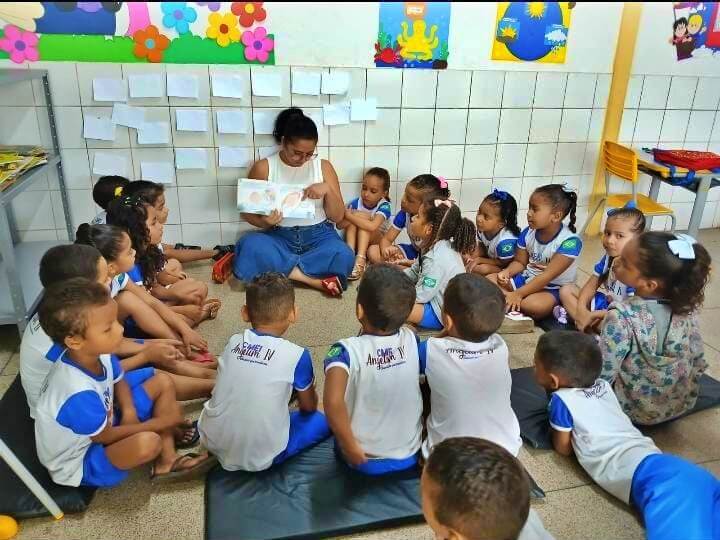 Alunos do 2º Período do Centro Municipal de Educação Infantil (CMEI) Angelim IV, localizado na zona Sul de Teresina, participaram de uma atividade de leitura realizada pela professora Maria da Cruz Gomes. A atividade teve como objetivo desenvolver a fluência leitora dos estudantes.