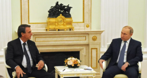 Depois de se submeter às regras sanitárias russas, Bolsonaro consegue foto...