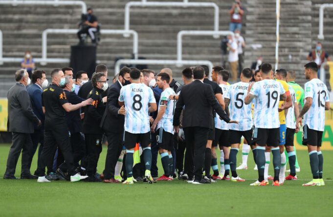 A inesperada e grotesca suspensão da partida entre Brasil e Argentina, o grande clássico sul-americano, provocou neste domingo reações imediatas e certo cruzamento de acusações. Inspetores da da Agência Nacional de Vigilância Sanitária (Anvisa) do Brasil irromperam em campo...
