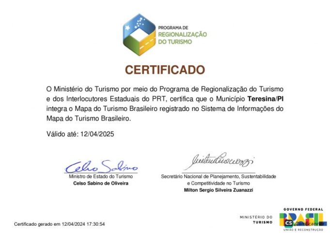 Teresina, em mais um ano consecutivo é classificada na categoria “A” do Mapa do Turismo Brasileiro de 2024, divulgado pelo Ministério do Turismo. Na oportunidade, também foi assinada uma portaria, reconhecendo o Conselho Municipal de Turismo da...
