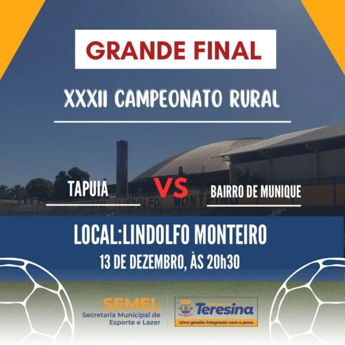 A Prefeitura Municipal de Teresina, por meio da Secretaria Municipal de Esportes e Lazer (semel) realiza hoje (13), a final do XXXII Campeonato Rural de futebol no estádio Lindolfo Monteiro.