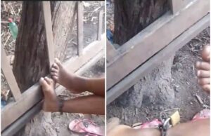 Mãe é detida por manter filha acorrentada a árvore no quintal...