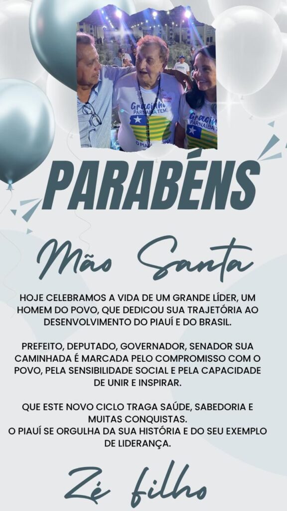 O Piauí celebra hoje o aniversário de Mão Santa, um dos maiores nomes da política piauiense e brasileira. Médico por vocação e líder por essência, Mão Santa dedicou sua vida ao serviço público, construindo uma trajetória marcada pela coragem, pela fé e pelo amor ao povo.