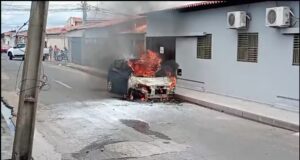 Carro pega fogo e assusta moradores no bairro Parque Piauí, em...