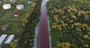 Córrego na Argentina muda para cor vermelha e gera suspeitas de...